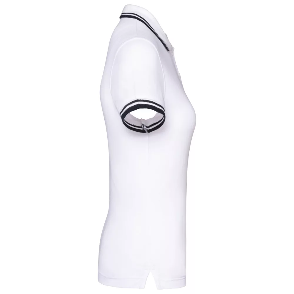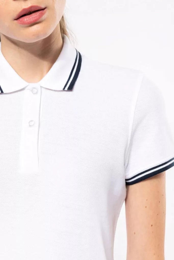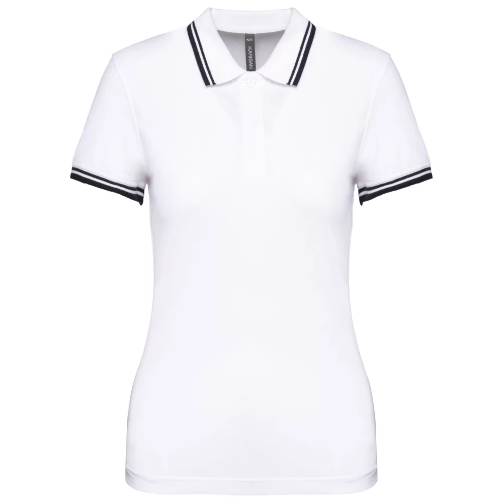 Kariban női galléros póló Striped Pique 180 fehér-tengerkék