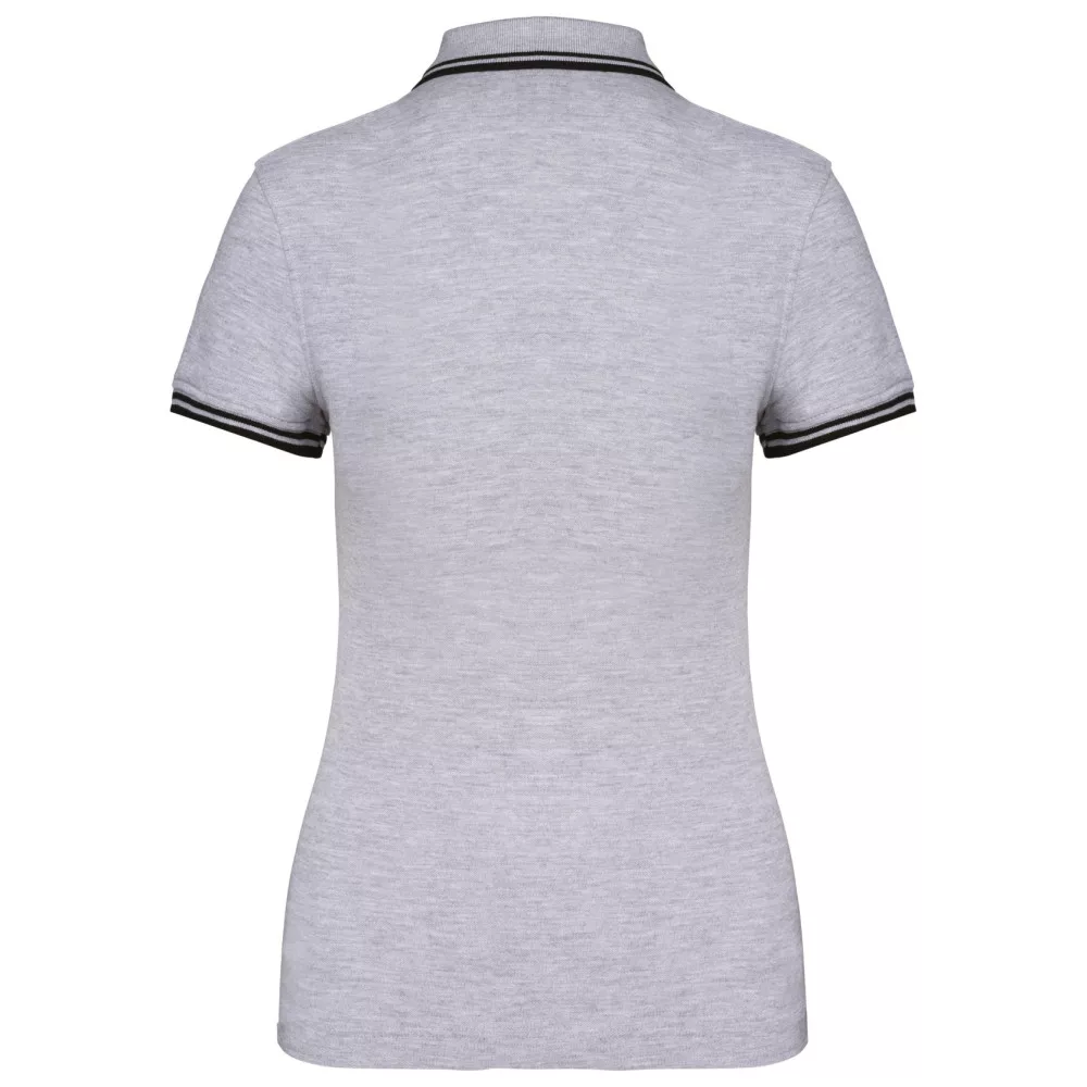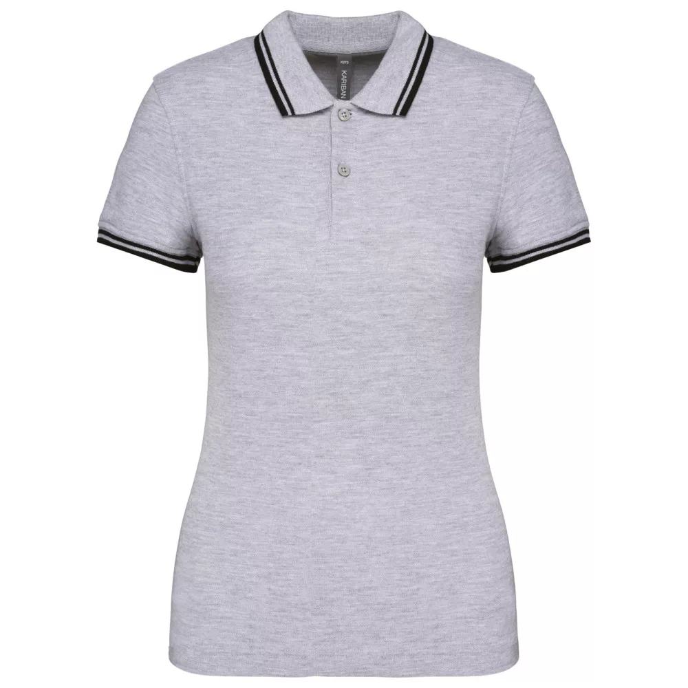 Kariban női galléros póló Striped Pique 180 melírozott szürke-fekete