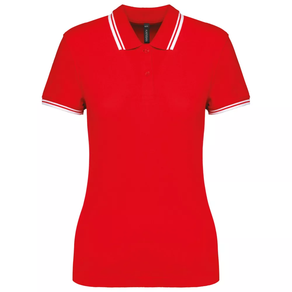 Kariban női galléros póló Striped Pique 180 piros-fehér