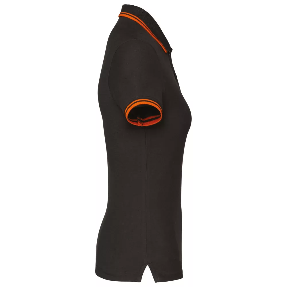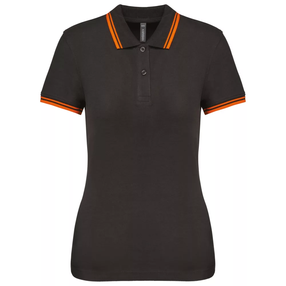 Kariban női galléros póló Striped Pique 180 sötétszürke-narancs