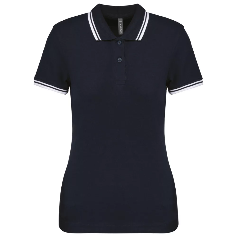 Kariban női galléros póló Striped Pique 180 tengerkék-fehér