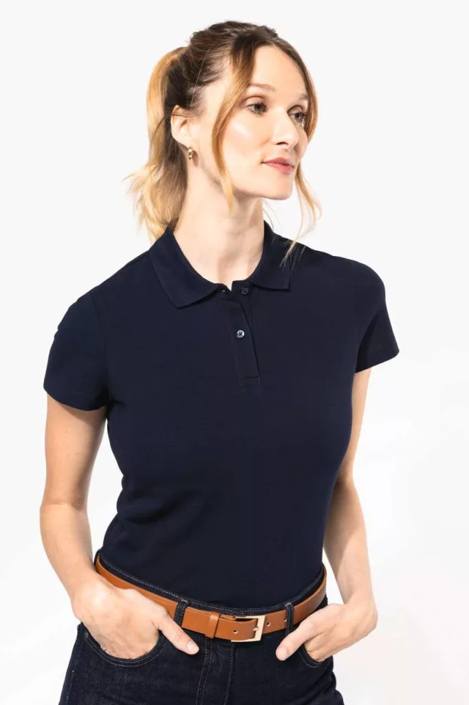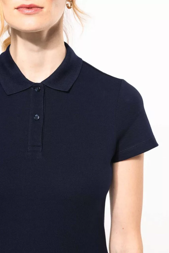 Karcsúsított szabású Kariban Premium PK201 Supima galléros női póló, oldalvarrással, 2 gombos színazonos gombolópánttal, oldalhasítékokkal, megerősített vállvarrással, bordás nyakkal, a mandzsettákon és az alsó szegélyen dupla varrással, kiváló minőségű, puha és selymes tapintású elasztánnal kombinált Supima®pamut piké szövetből!