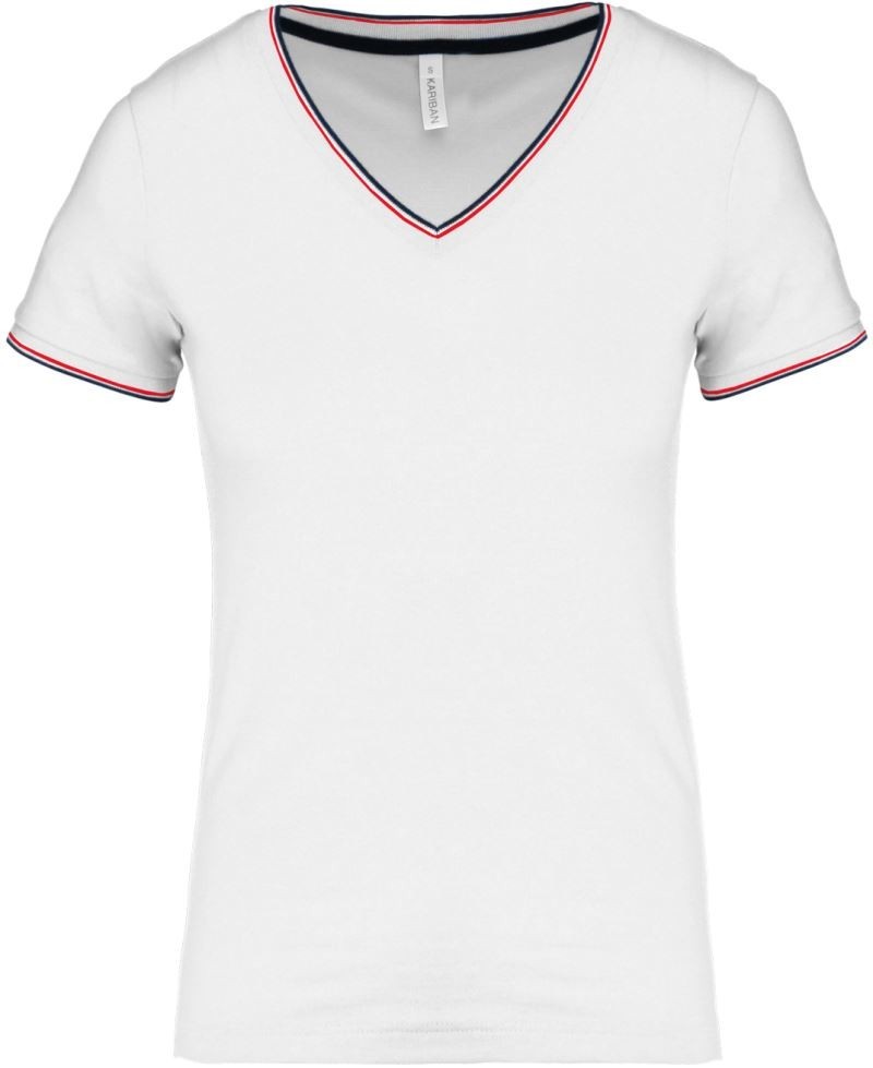 Kariban női póló Piqué V-Neck 170 fehér-tengerkék-piros