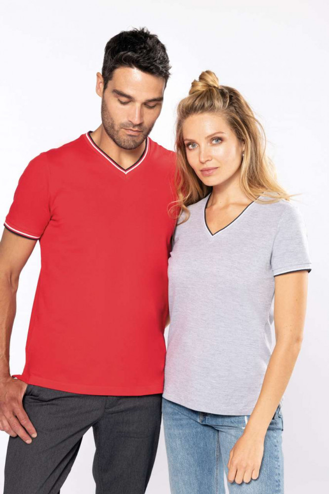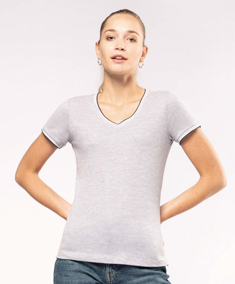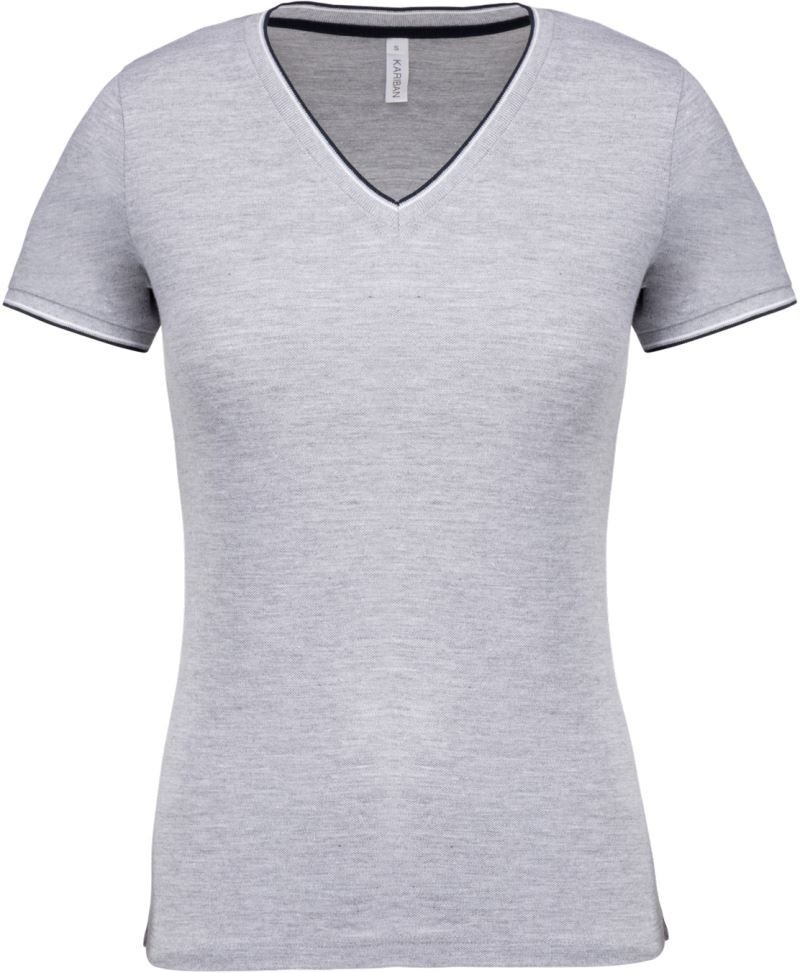 Kariban női póló Piqué V-Neck 170 melírozott szürke-tengerkék-fehér