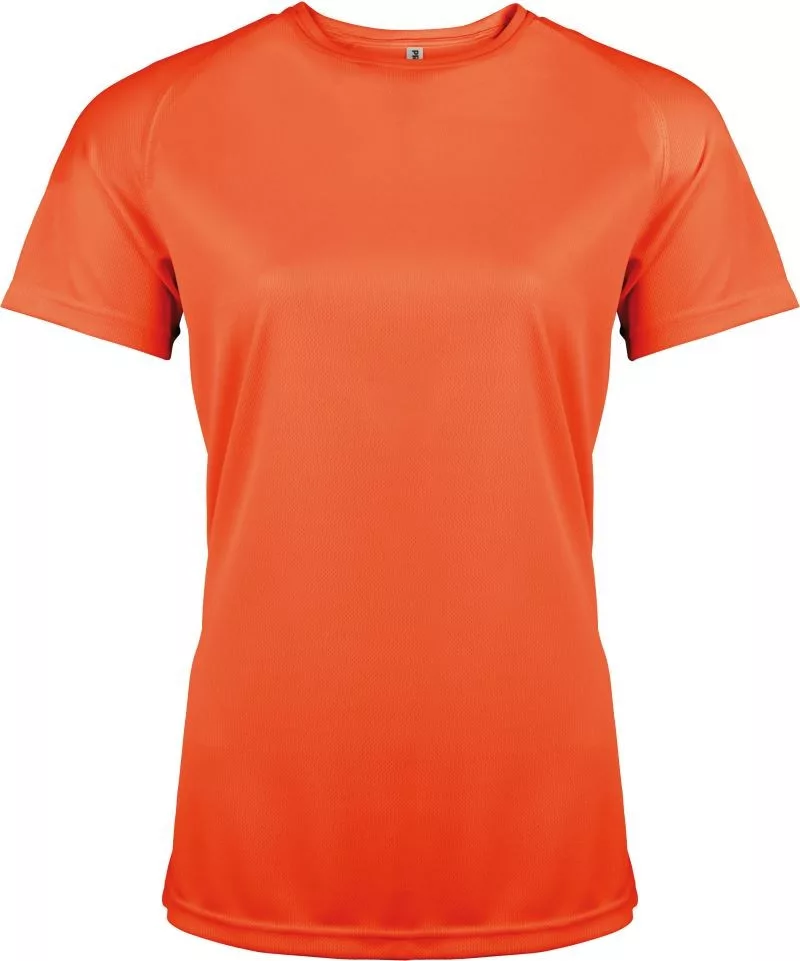 Kiváló minőségű termékünk ez a gyorsan száradó és légáteresztő narancs technikai női póló.