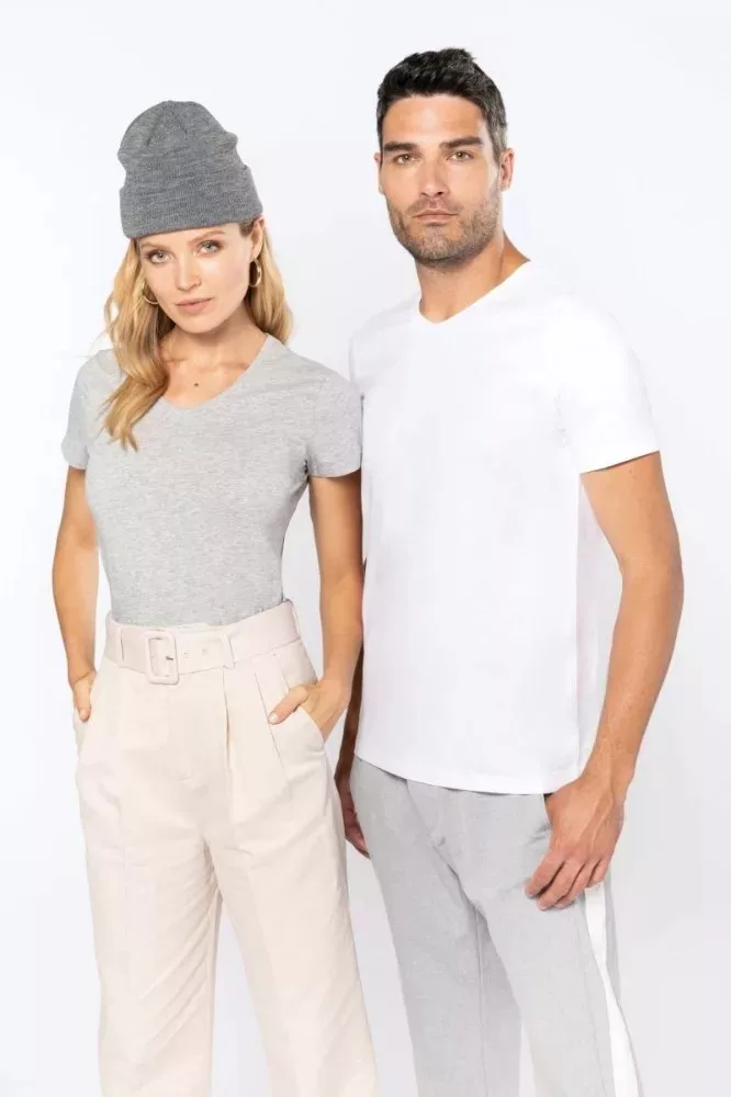 Kariban női póló Stretch V-Neck 160 melírozott világosszürke
