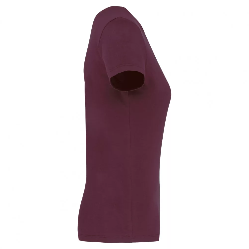 Kiváló minőségű, karcsúsított szabású rövid ujjú bordó női póló.