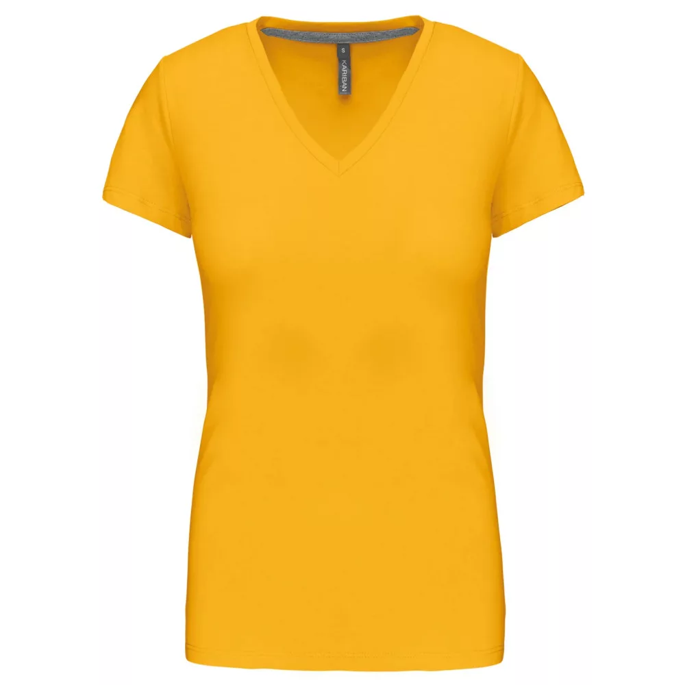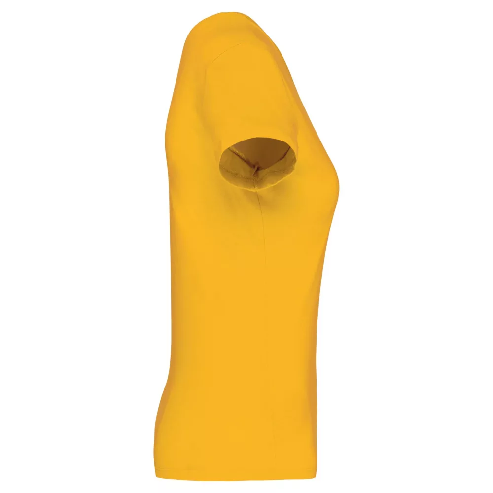 Kiváló minőségű, karcsúsított szabású rövid ujjú sárga női póló.
