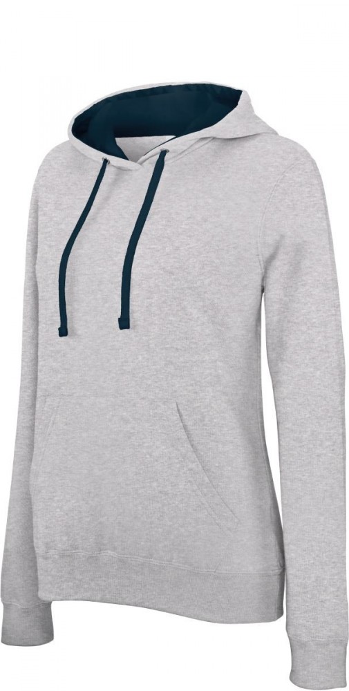 Kariban női pulóver Contrast Hooded Sweatshirt 280 melírozott szürke-tengerkék