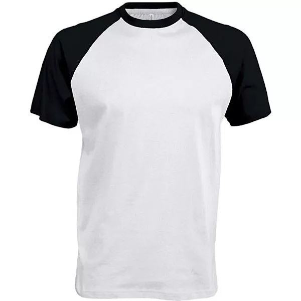 Kiváló minőségű, kontrasztos színű raglán ujjú fehér póló.
