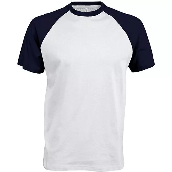 Kiváló minőségű, kontrasztos színű raglán ujjú fehér póló.