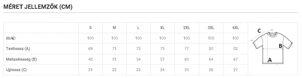 A termék az alábbi méretekben kapható: M, L, XL, XXL, 3XL, 4XL