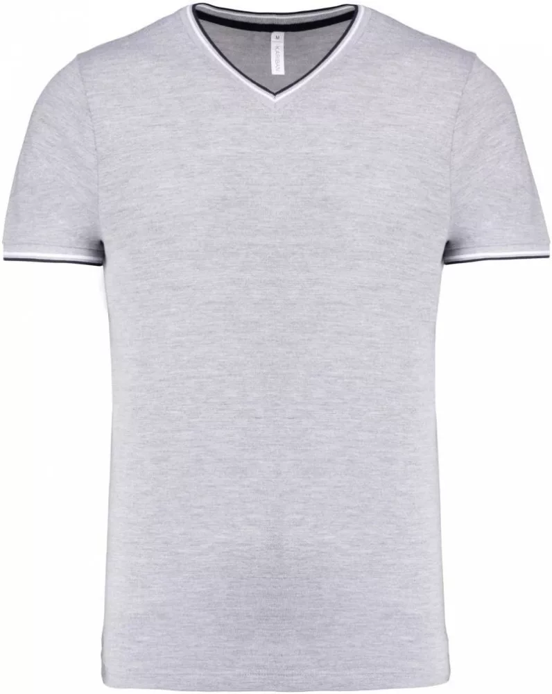 Kariban póló Piqué V-Neck 170 melírozott szürke-tengerkék-fehér