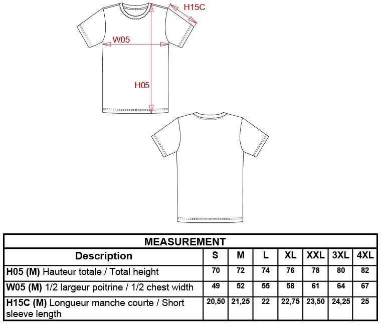 A termék az alábbi méretekben kapható: S, M, L, XL, XXL, 3XL, 4XL