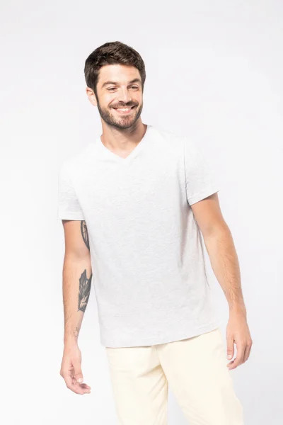 Kariban póló V-Neck T 180 melírozott hamuszürke