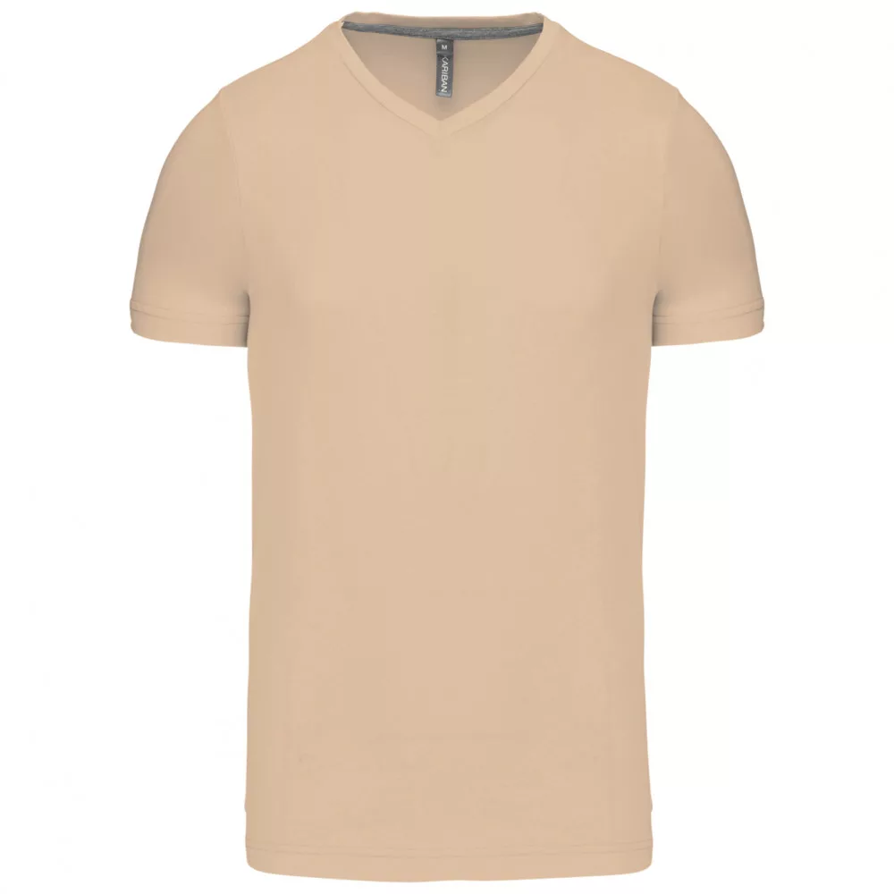 Kiváló minőségű, karcsúsított szabású rövid ujjú bézs póló.