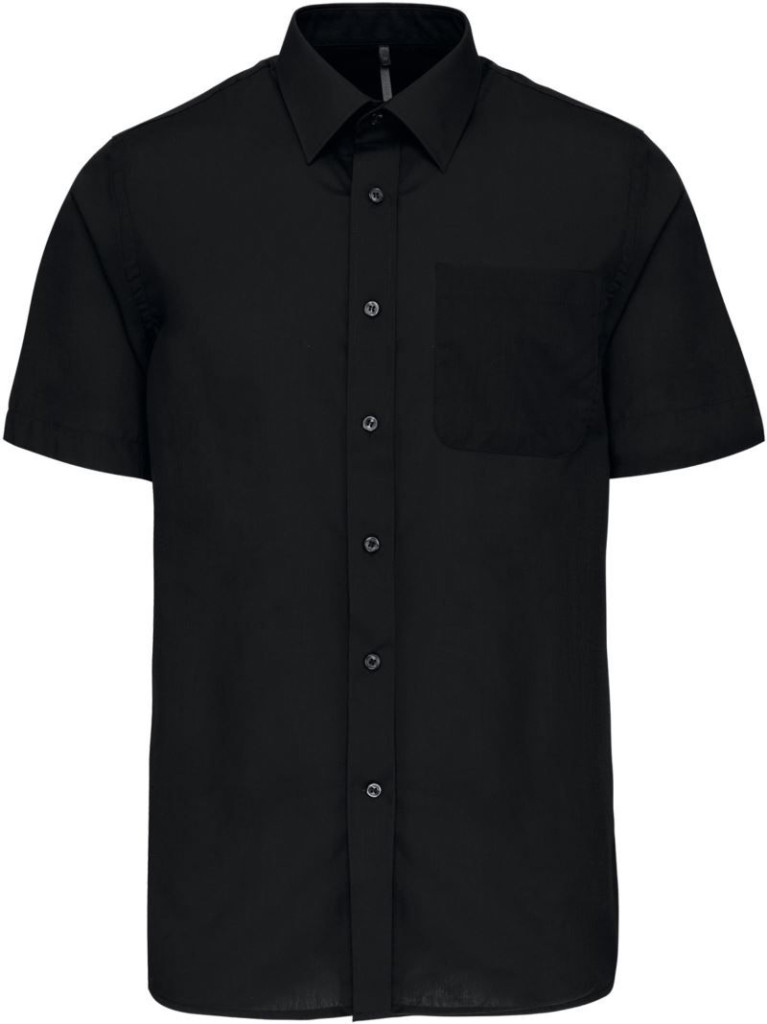 Klasszikus szabású, kiváló minőségű fekete rövid ujjú ing bal oldalon mellzsebbel.