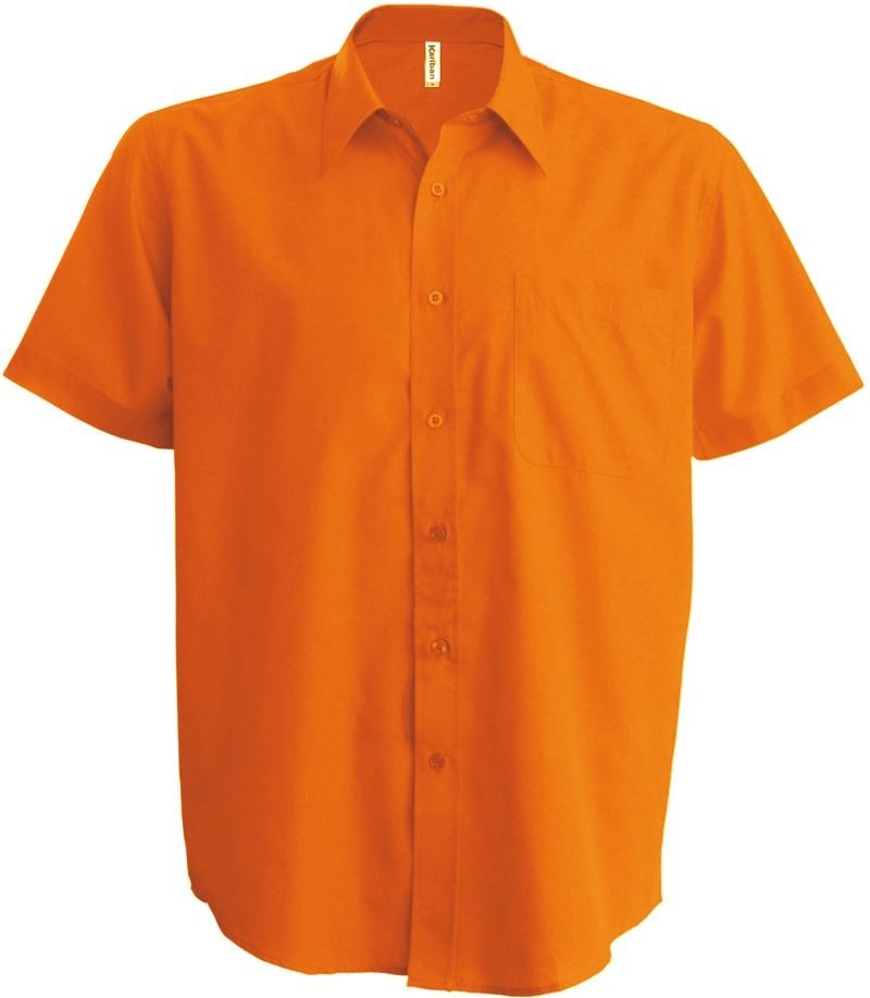 Klasszikus szabású, kiváló minőségű narancs rövid ujjú ing bal oldalon mellzsebbel.