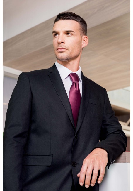 Klasszikus szabású, kiváló minőségű fekete zakó 2 elülső zsebbel és 2 belső, gombos zsebbel.