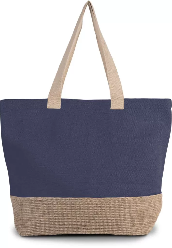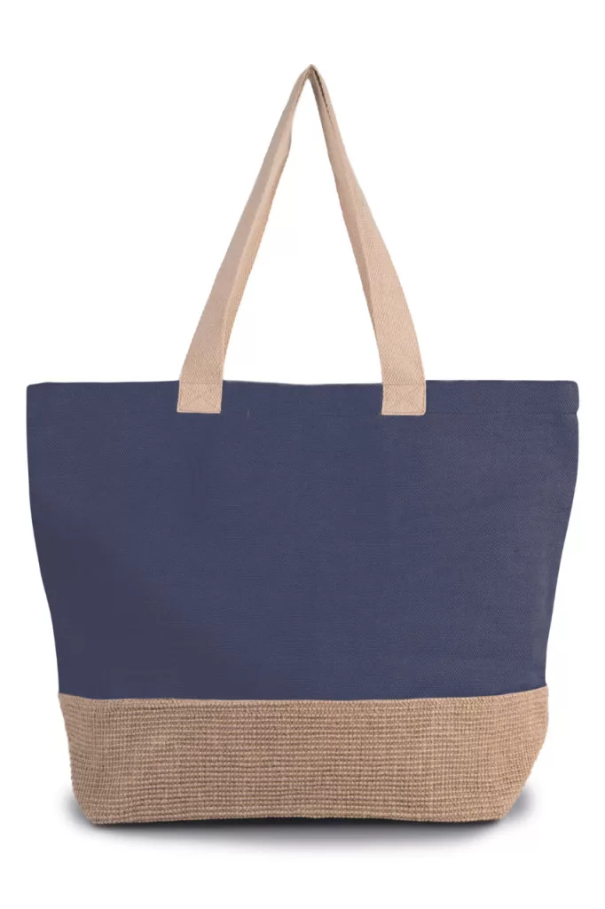 • Nagy pamut és juta (juco) bevásárlótáska természetes kontrasztos színű juta alappal