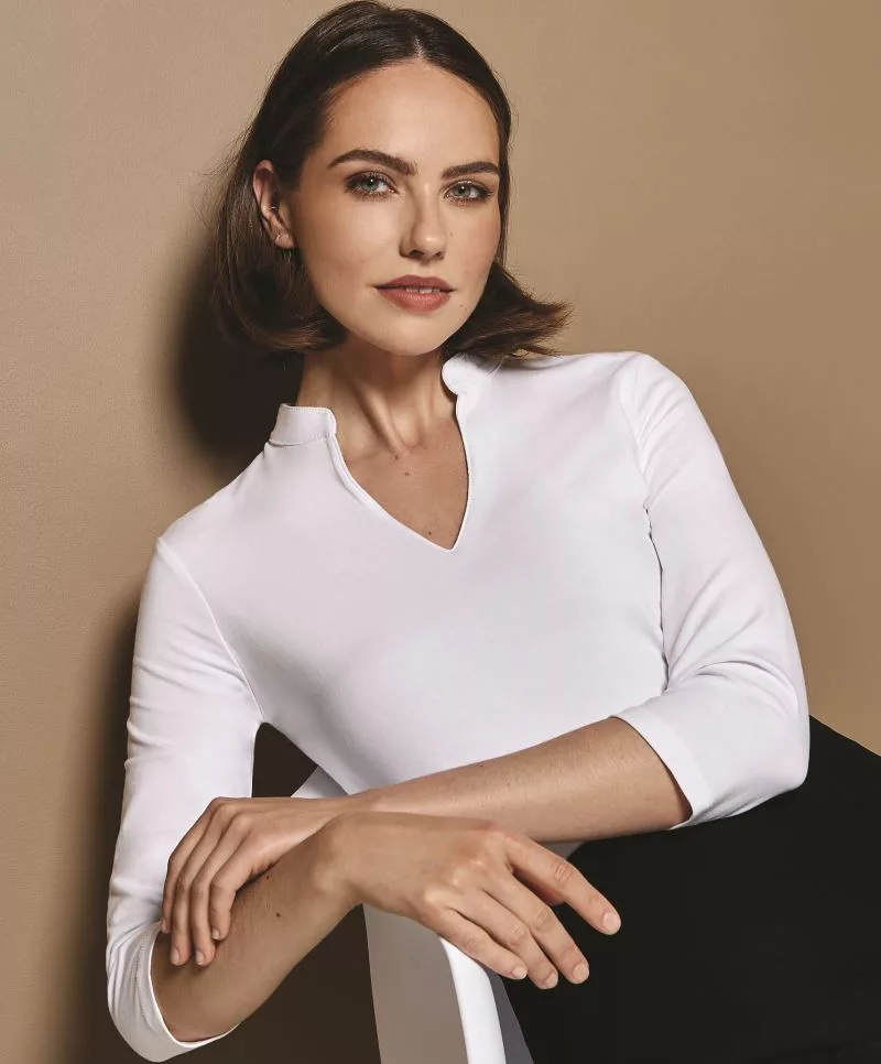 Kustom Kit 3/4 ujjú blúz Mandarin 200 fehér