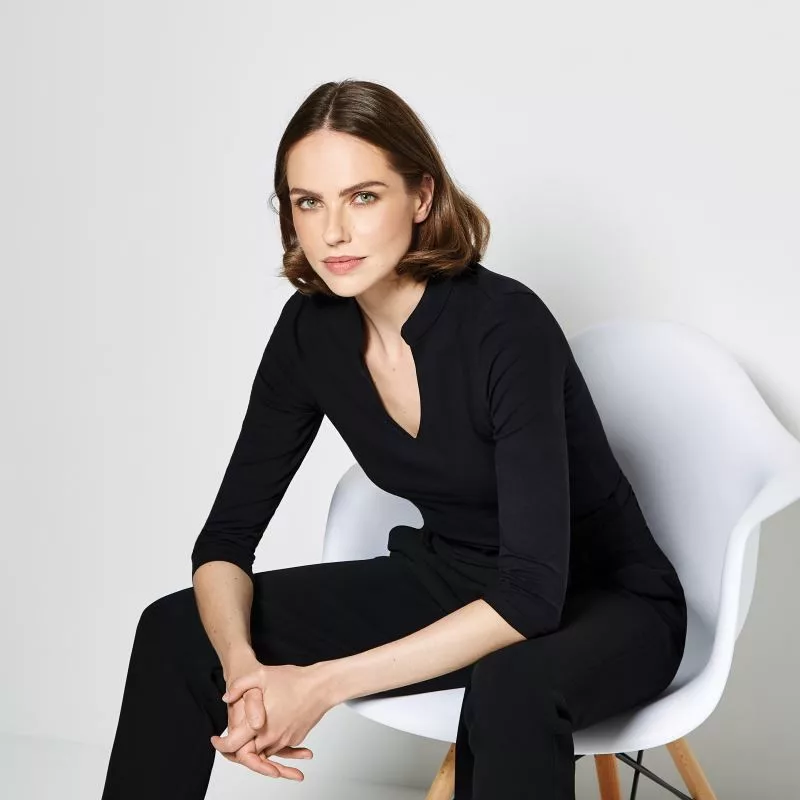 Kustom Kit 3/4 ujjú blúz Mandarin 200 fekete