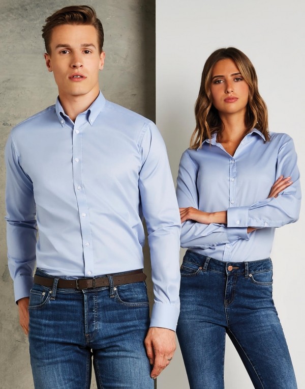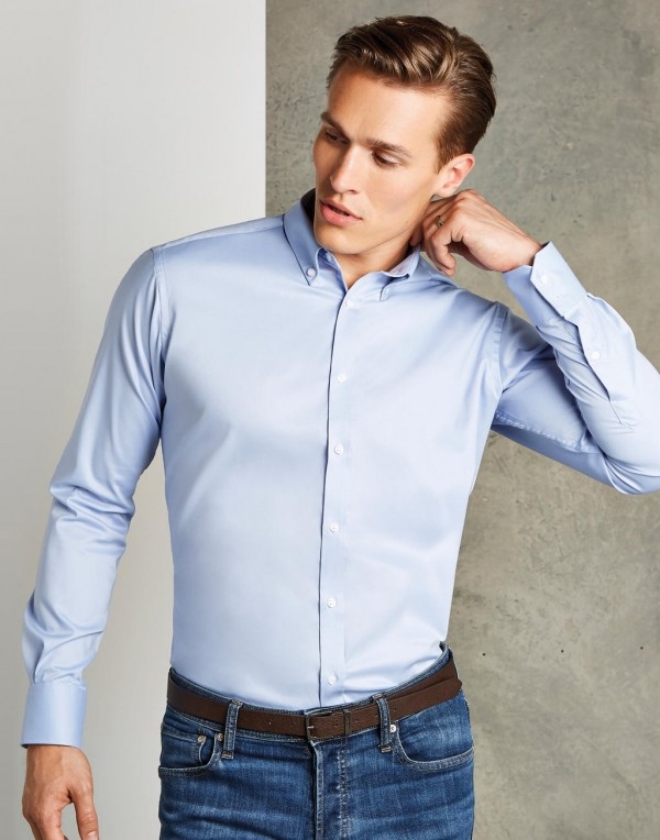 Kustom Kit hosszú ujjú ing Slim Fit Stretch Oxford 143 világoskék