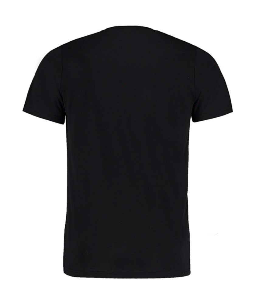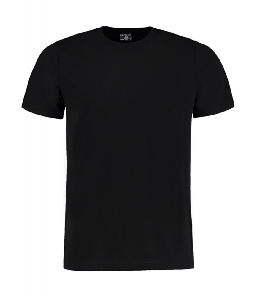 Kiváló minőségű termékünk ez a divatos fazonú fekete póló kevertszálas anyagból, duplán tűzött derékrésszel és ujjvégekkel!