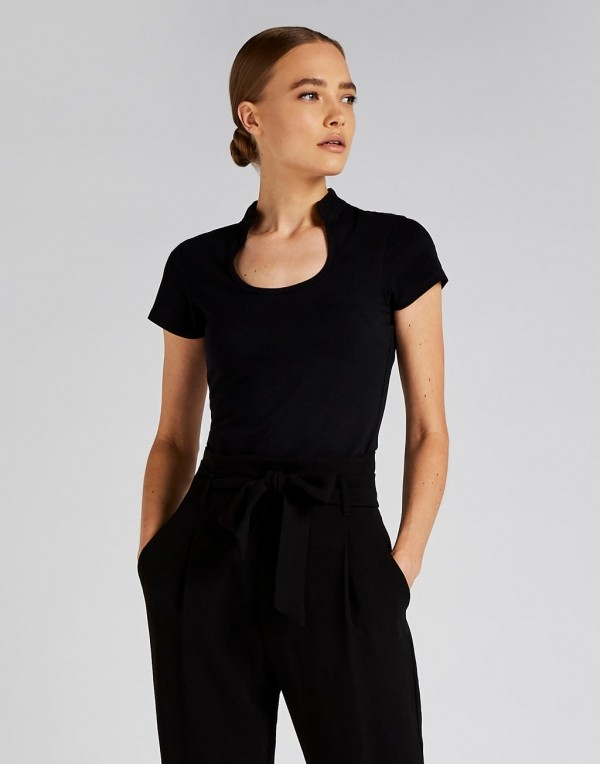 Kustom Kit rövid ujjú blúz Keyhole 200 fekete