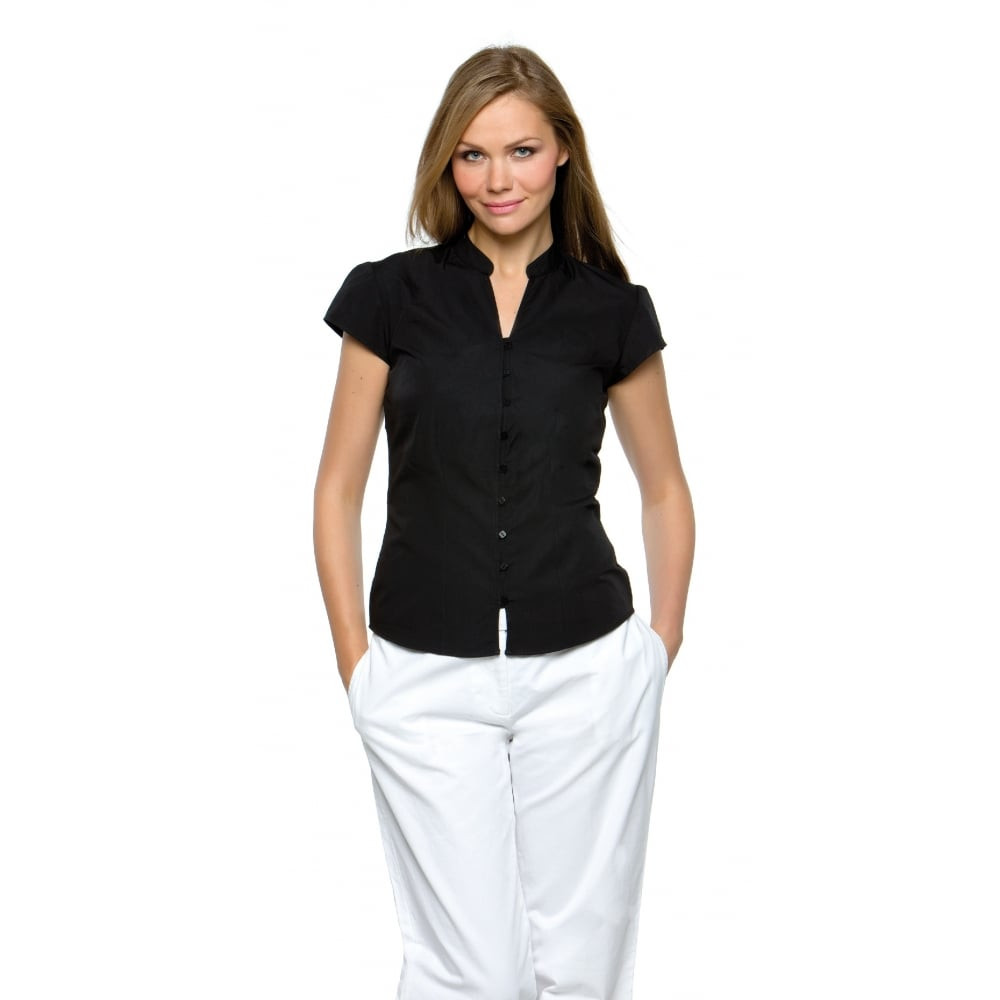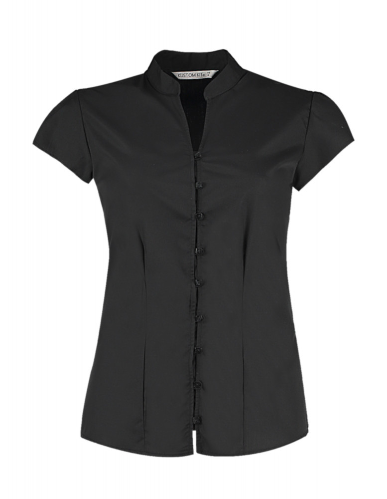 Kustom Kit rövid ujjú blúz Mandarin 115 fekete