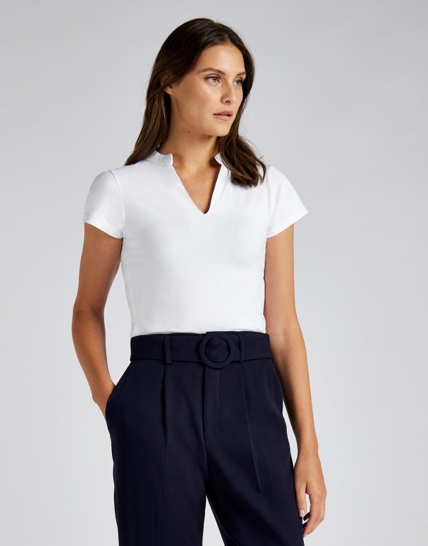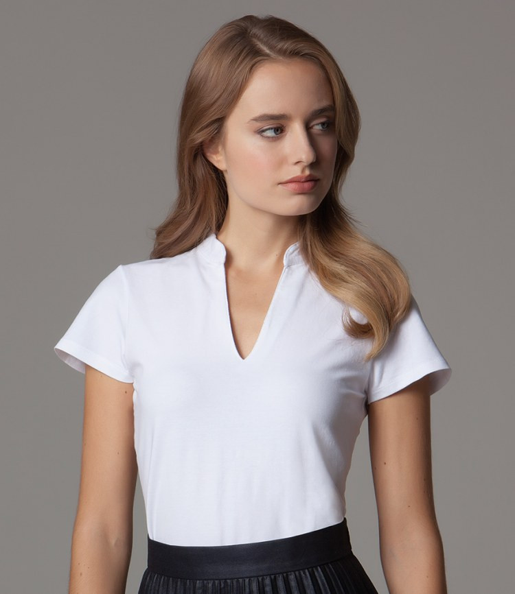 Kustom Kit rövid ujjú blúz Mandarin 200 fehér