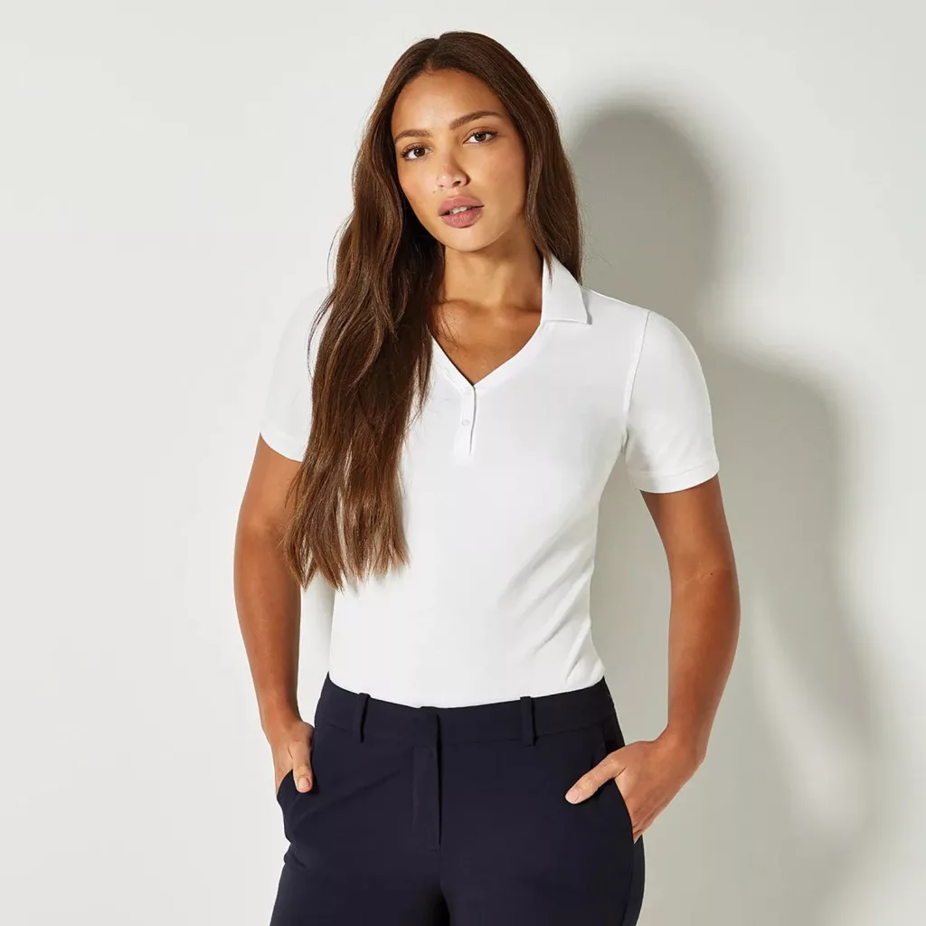 Kustom Kit rövid ujjú galléros blúz Comfortec 210 fehér