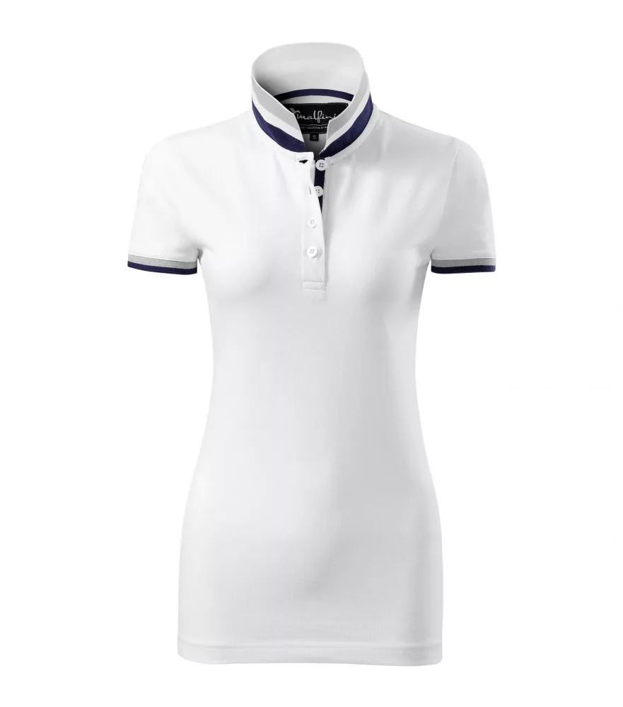 Malfini galléros női póló Collar Up 215 fehér-szürke-kék