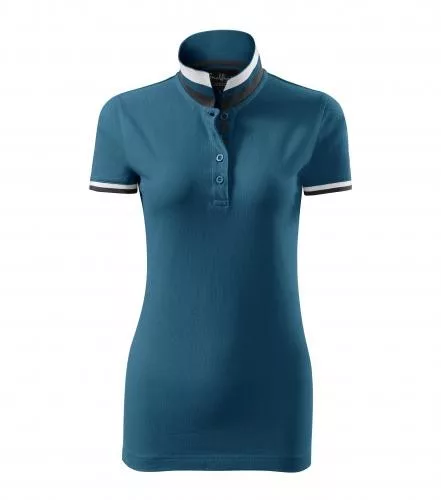 Malfini galléros női póló Collar Up 215 petrol kék-fehér-szürke