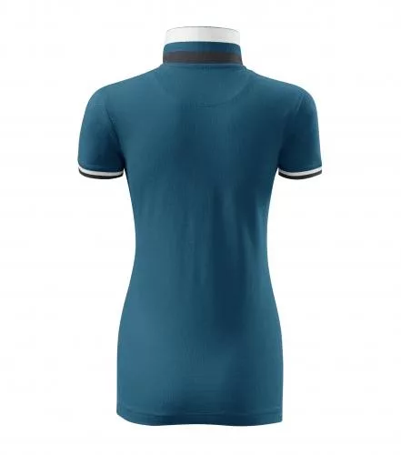 Karcsúsított szabású, kiváló minőségű galléros női póló piké anyagból, az ujjvégeken és a a galléron eltérő színű dupla kontraszt színekkel díszítve