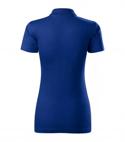 A kék galléros női póló anyaga 100% pamutból (single jersey) készült, 180 g/m2 súlyú. Szilikonos kezelésnek köszönhetően göbösödés elleni védelmet nyújt.