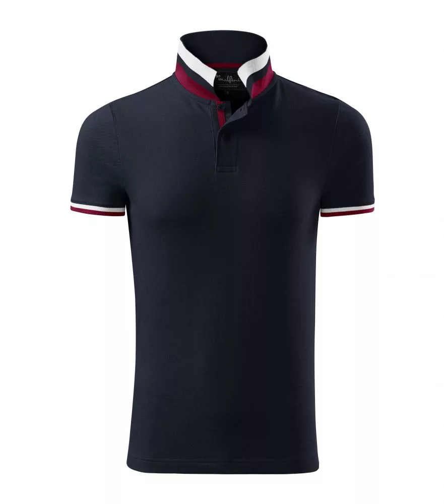 Malfini galléros póló Collar Up 215 szürkéskék-fehér-bordó