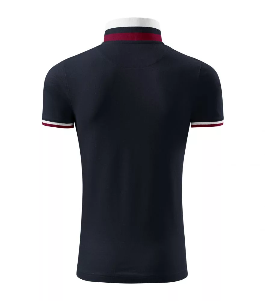 Divatos szabású, kiváló minőségű galléros póló piké anyagból, az ujjvégeken és a galléron eltérő színű dupla kontraszt színekkel díszítve