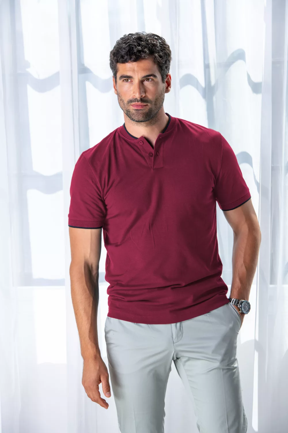 Malfini galléros póló Diamond 215 garnet-tengerkék