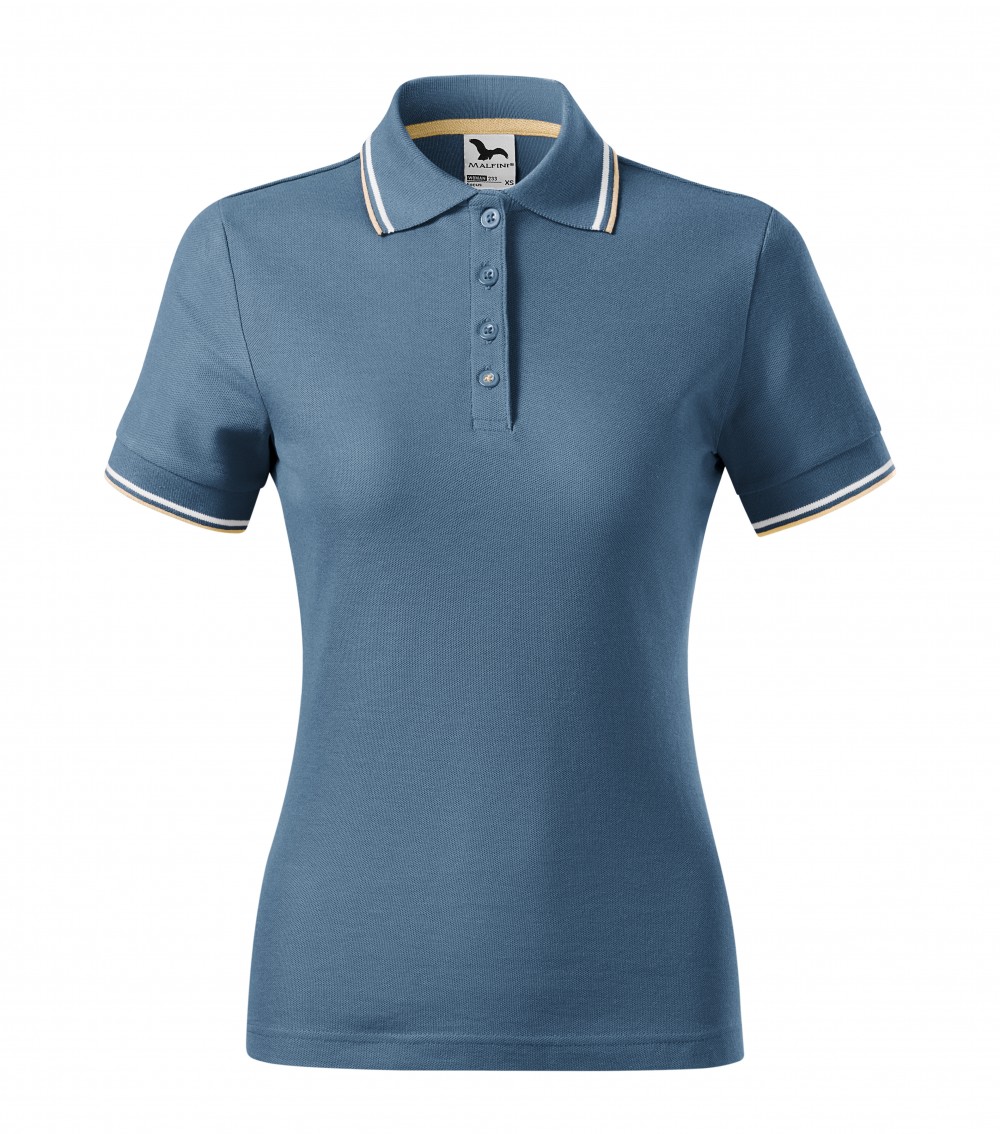 Malfini női galléros póló Focus 180 farmerkék-fehér-natúr