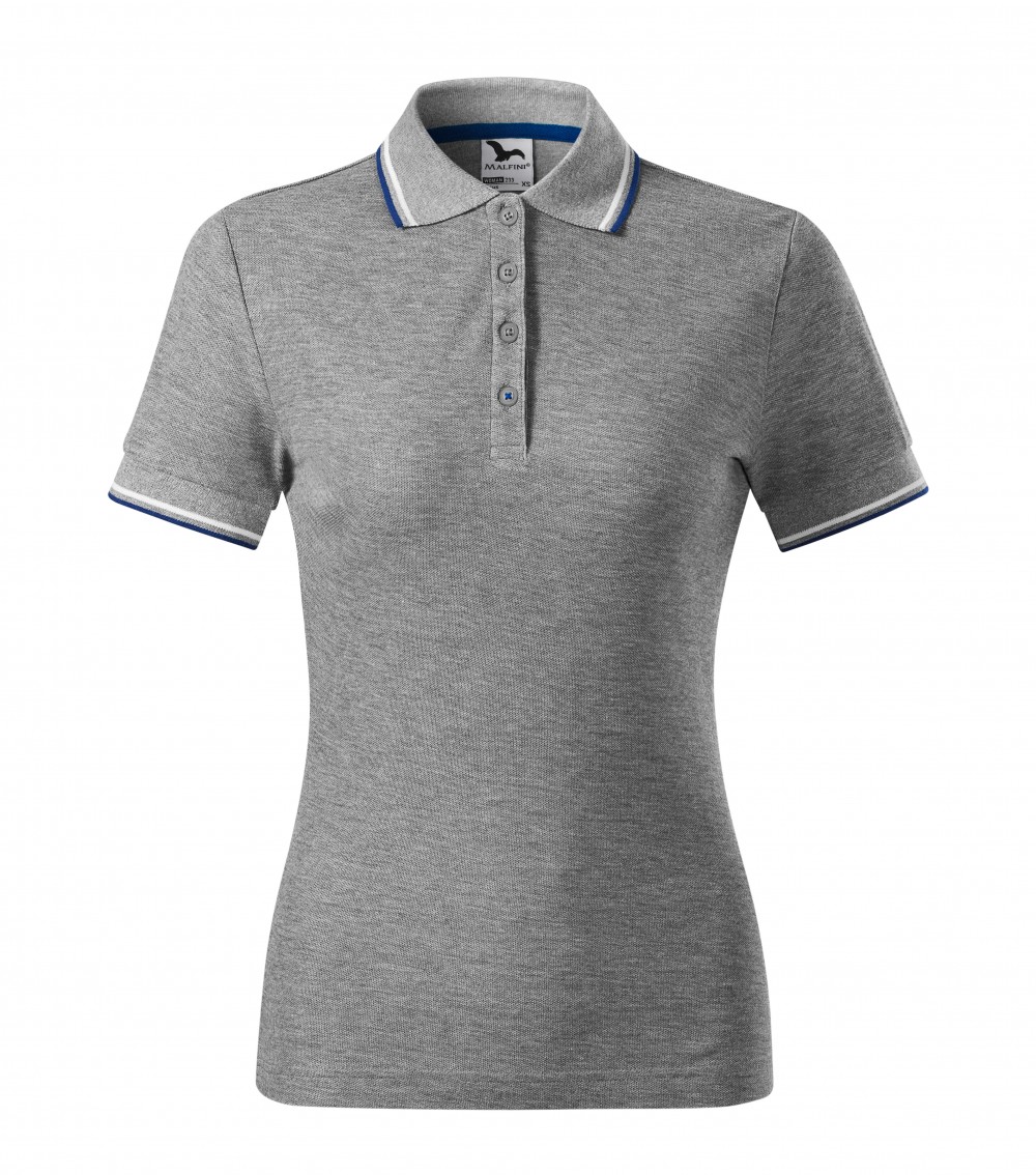 Malfini női galléros póló Focus 180 melírozott sötétszürke-fehér-királykék