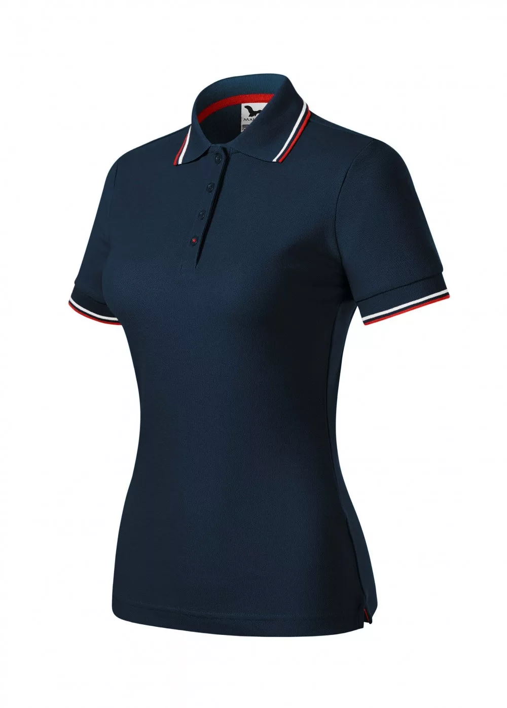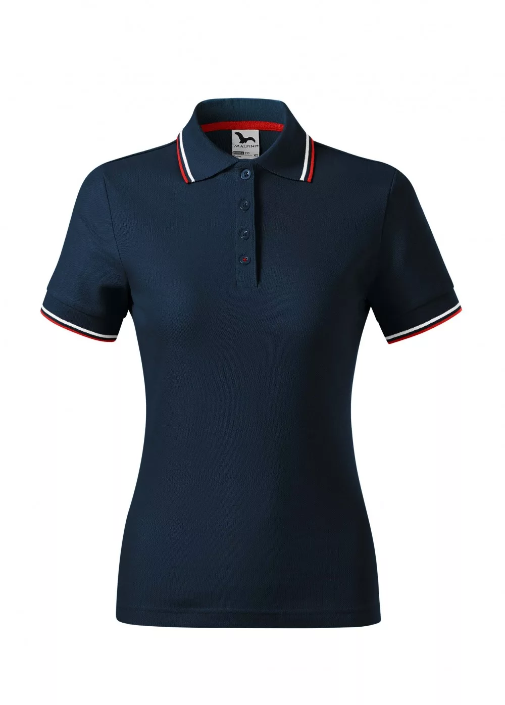 Malfini női galléros póló Focus 180 tengerkék-fehér-piros