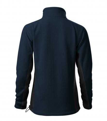 A karcsúsított női polár felső divatos betételemekkel, 2 elülső cipzáros zsebbel és díszítő varrással készült.