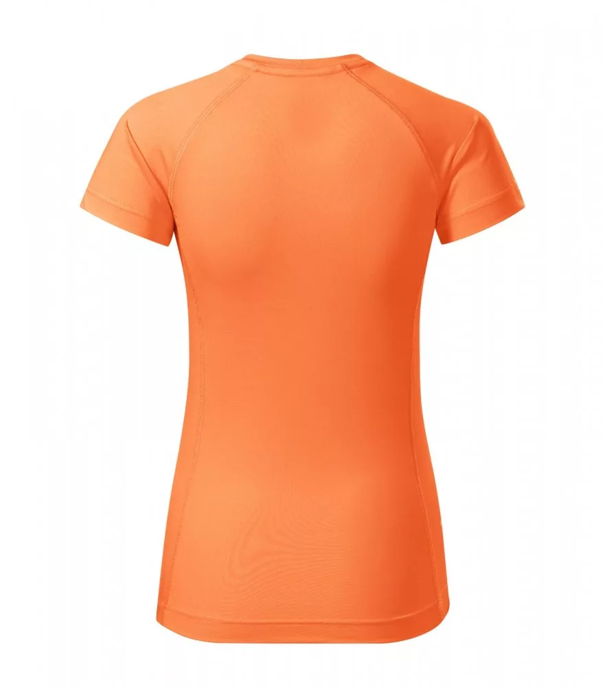 Kiváló minőségű termékünk ez a karcsúsított szabású narancs női technikai póló mikropoliészterből.