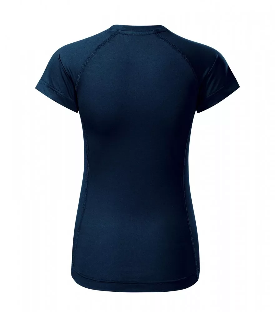 Kiváló minőségű termékünk ez a karcsúsított szabású kék női technikai póló mikropoliészterből.