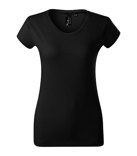 A fekete női póló anyaga 100% pamutból (SUPIMA®) készült, single jersey, 160 g/m2 súlyú.