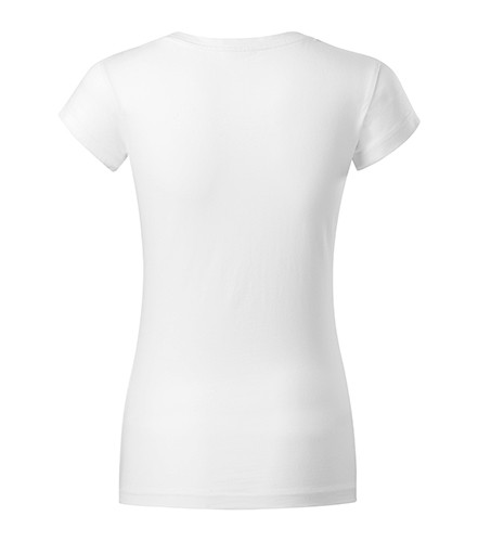 Karcsúsított szabású, kiváló minőségű, címkementes, könnyen átmárkázható fehér női póló single jersey anyagból.