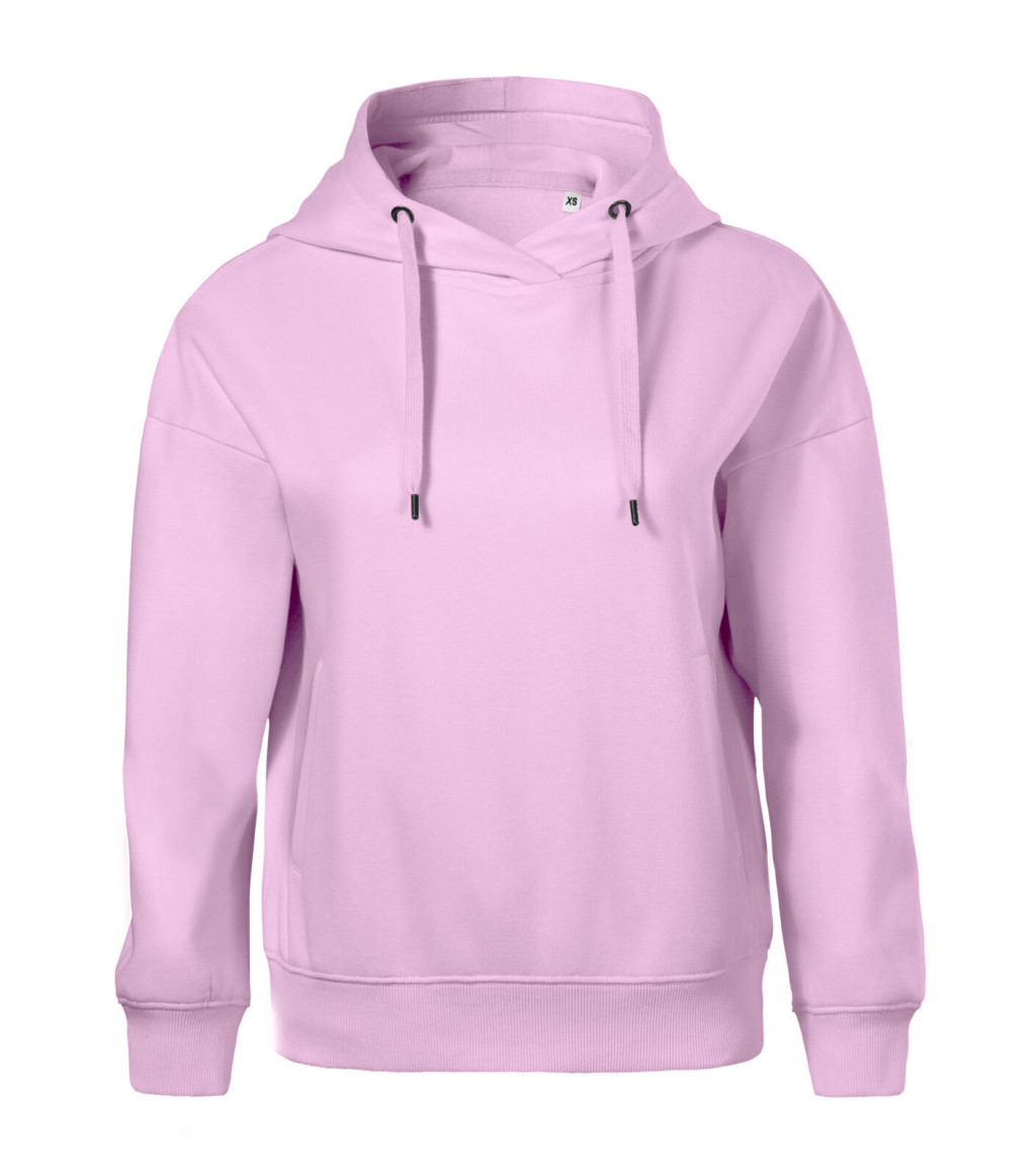 Divatos, laza szabású Malfini Moon 421 női pulóver, oldalvarrással, rejtett kenguru zsebbel, zsinórral összehúzható kétrétegű kapucnival, a bordás kötésű szegély és a mandzsetták 5% elasztánnal, pamutban gazdag kevertszálas futter szövetből, bolyhos belsővel!