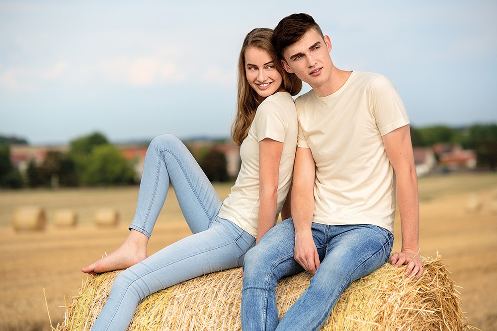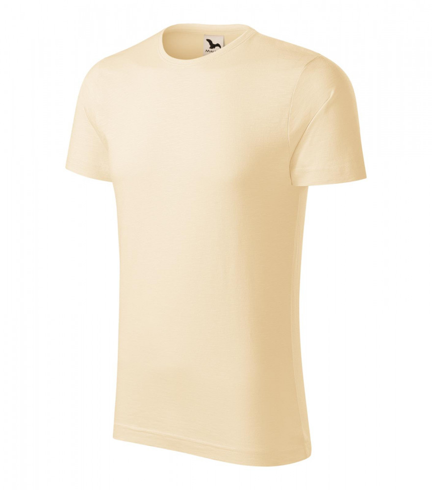 Klasszikus szabású, kiváló minőségű bézs rövid ujjú póló single jersey slub anyagból, mely 100% Organikus pamutból készült