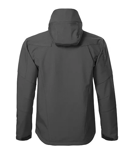 A softshell kabát két elülső- és egy cipzáras mellzsebbel, valamint bélelt kapucnival készült.